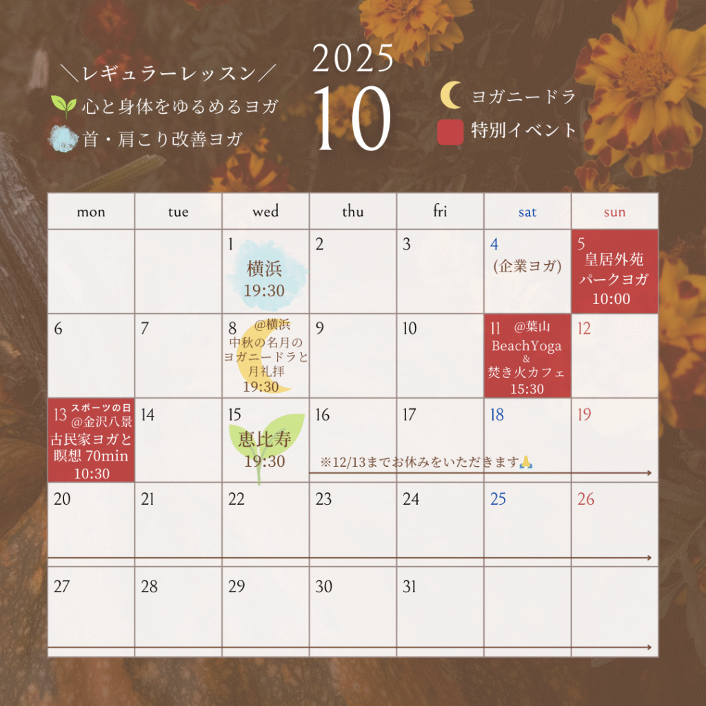 10月15日(水)恵比寿のスタジオのレッスンが最後となりますので、よろしければ遊びに来ていただけたら嬉しいです😌